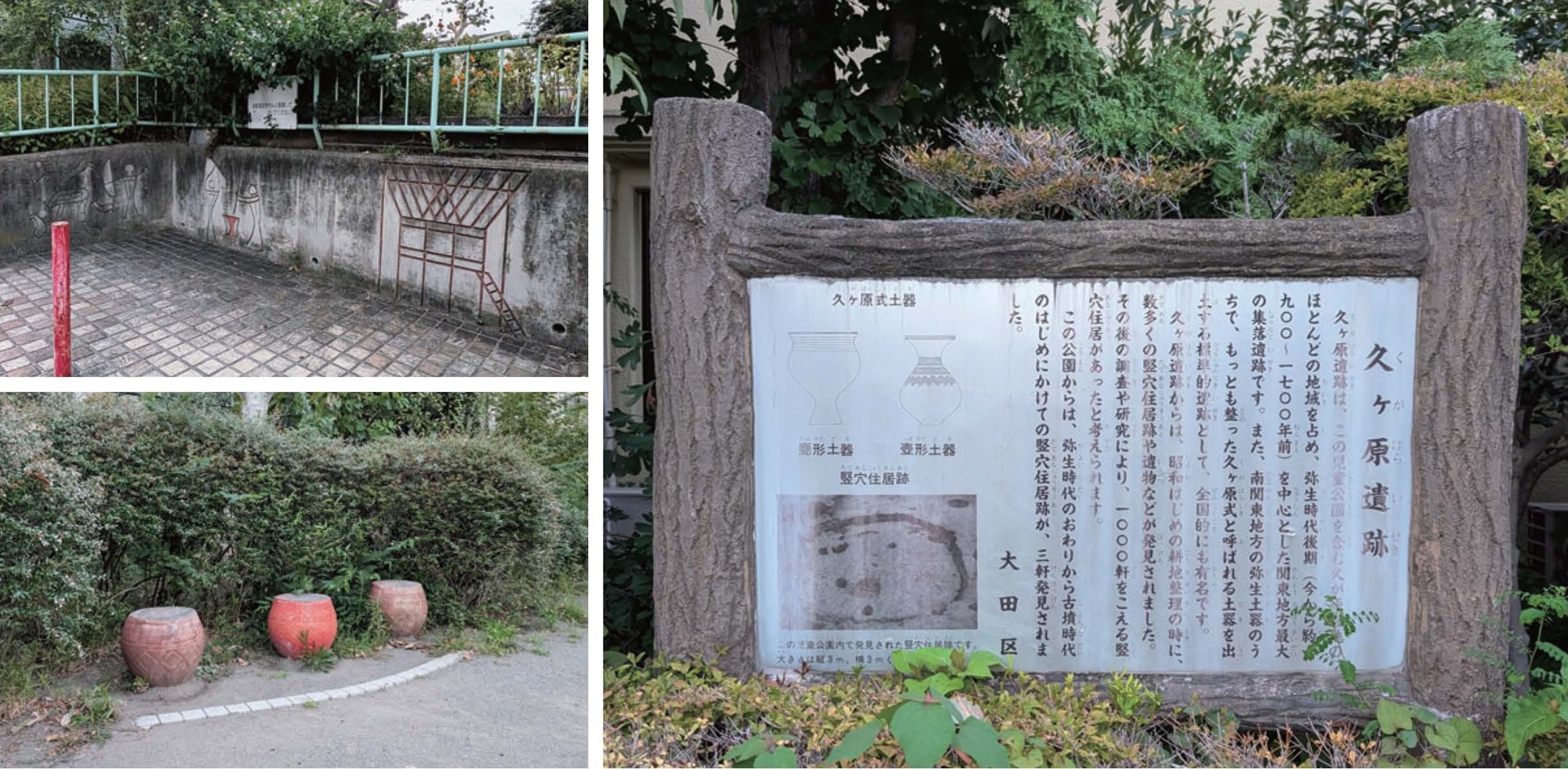 閑静な住宅街として知られる久が原地区では、関東ローム層から約12,000年前の旧石器時代の遺跡「久原小学校内遺跡」が発見され、大田区最古の遺跡とされています。さらに、区内各所で発見された遺跡の多くは、現在公園として整備され、地域の文化遺産を身近に感じられる場所となっています。