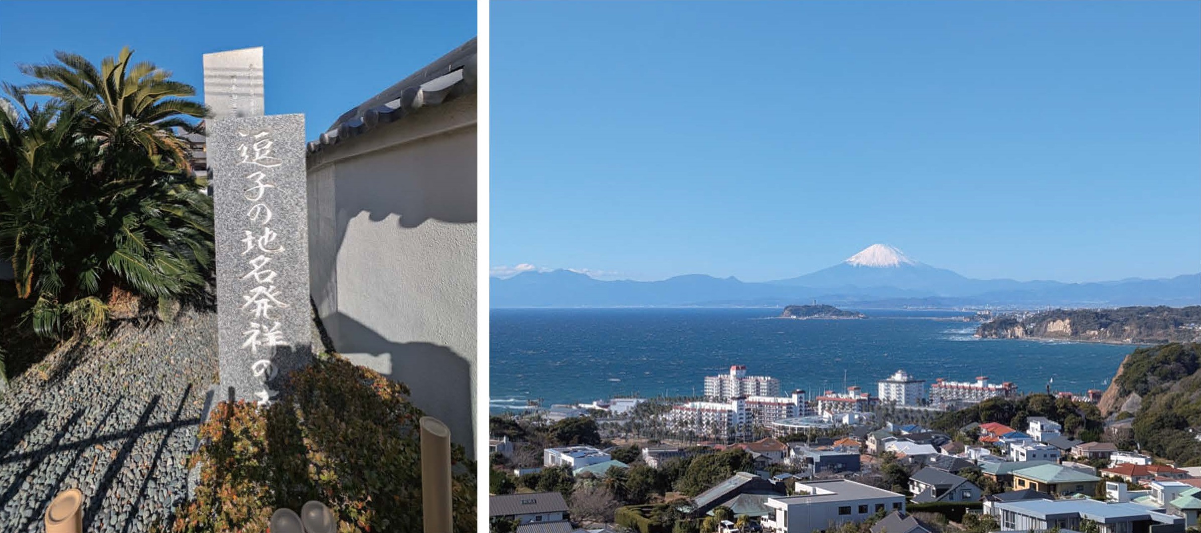現在の披露山公園は江の島や富士山を望む絶景スポットとして親しまれていますが、展望台付近には第二次世界大戦時の海軍高射砲陣地の跡が残り、コンクリート製の砲座遺構が見られます。公園内の猿舎はこの砲座跡を活用したもので、歴史の痕跡を身近に感じられ、鎌倉時代から近代まで時代の記憶が幾層にも重なる場所です。